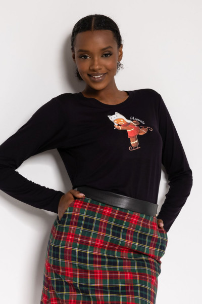 Amnesia Fashion - Eva Prokai hosszú ujjú felső, fekete színben, kerek nyakkivágással, elején filmnyomott mintával márkajelzéssel.