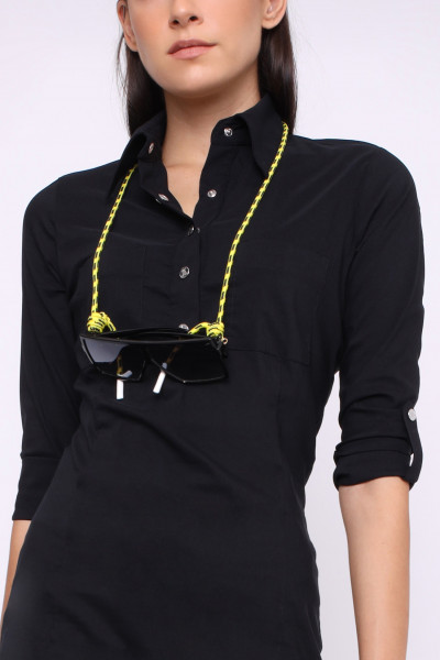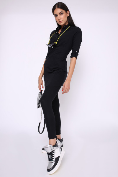Amnesia Fashion - Eva Prokai galléros ingtunika (Eskeli) fekete színben, mellzsebekkel, elején és ujján gombos megoldással a tavaszi Amnesia kollekcióból.