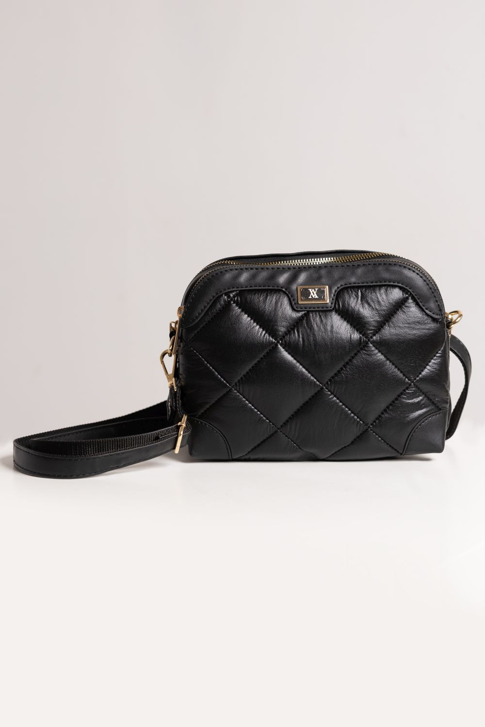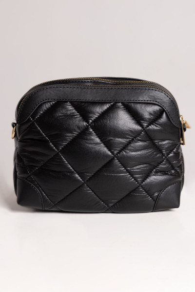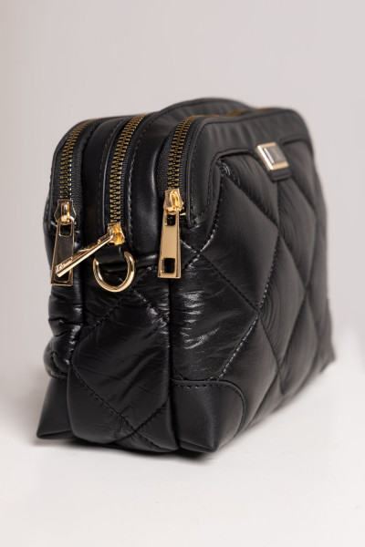 Amnesia Fashion - Eva Prokai steppelt kistáska, fekete színben, cipzáros záródással, belseje egyterű, elől és hátul is cipzáros rekesszel, hozzá tartozó állítható pánttal, elején fém márkajelzéssel.