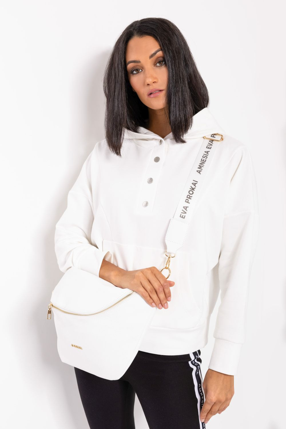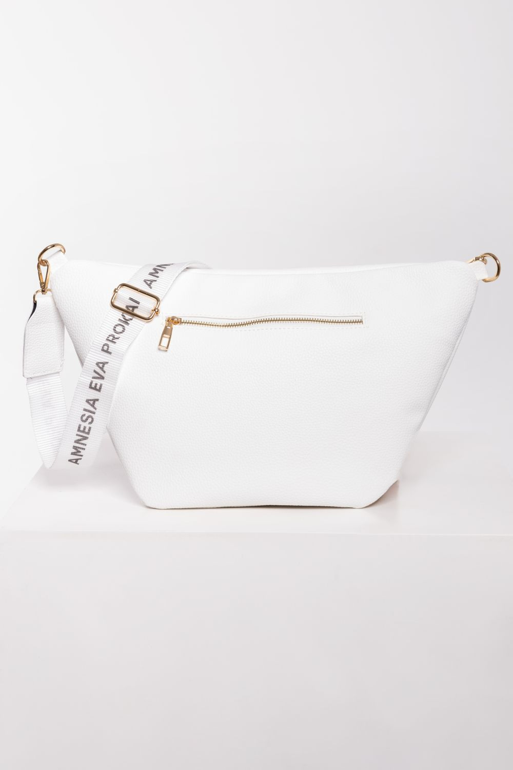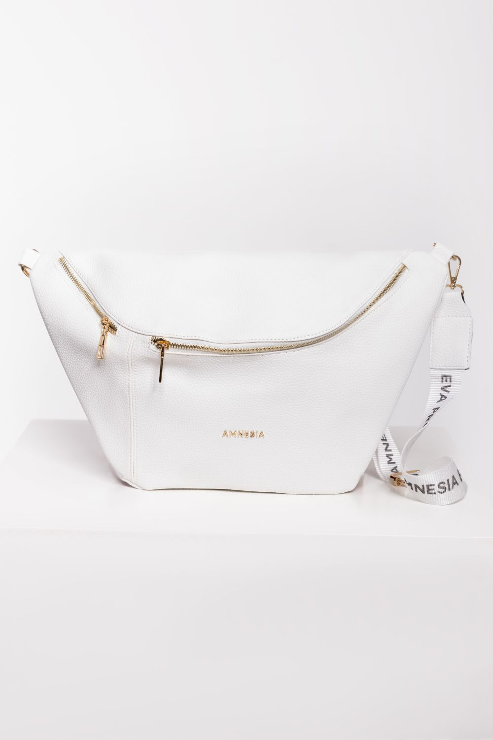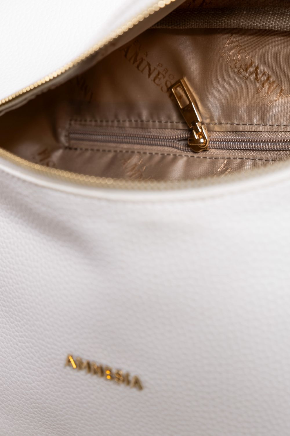 Amnesia Fashion - Eva Prokai válltáska, fehér színben, cipzáros záródással, belseje egyterű, elől cipzáros rekesszel, hozzá tartozó állítható pánttal, elején fém márkajelzéssel.