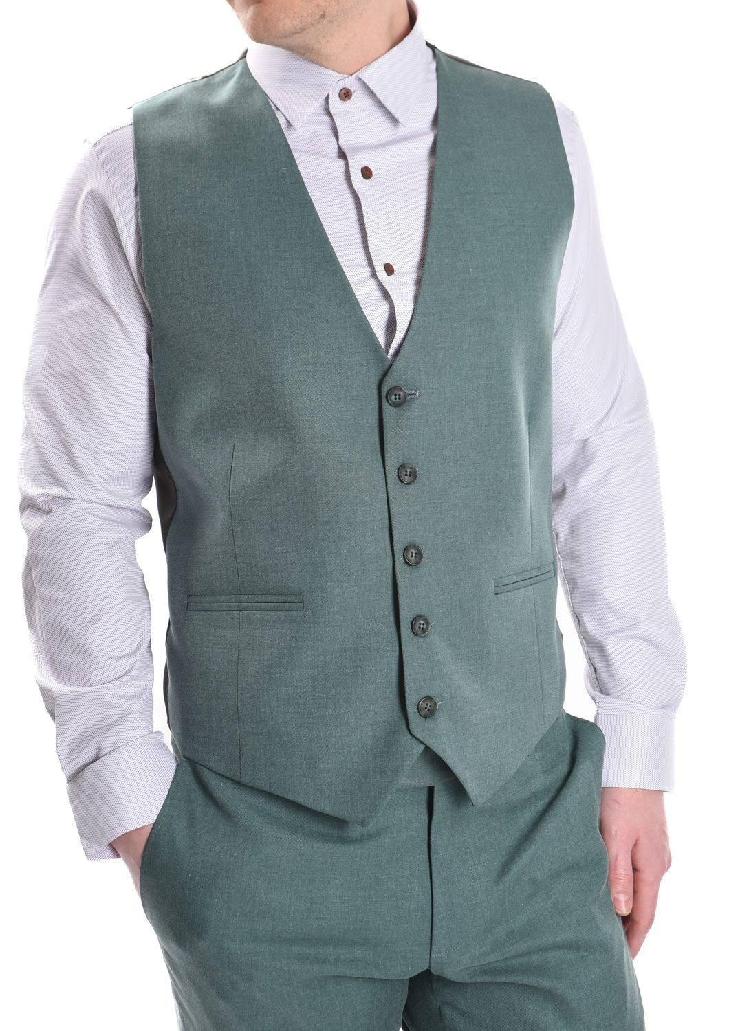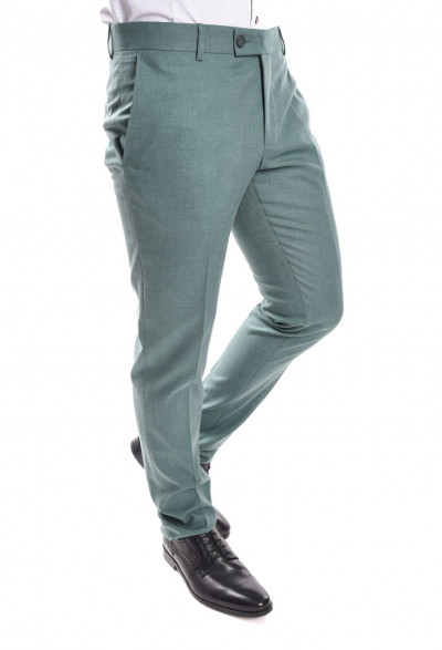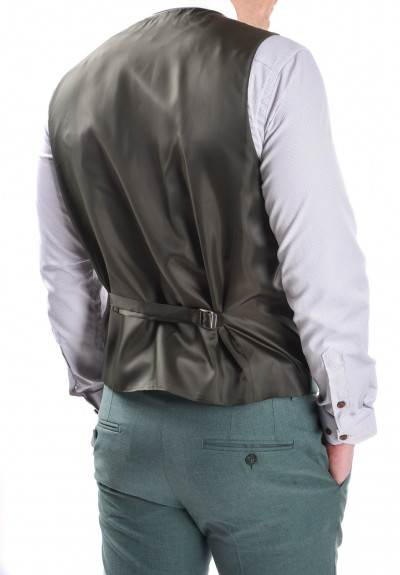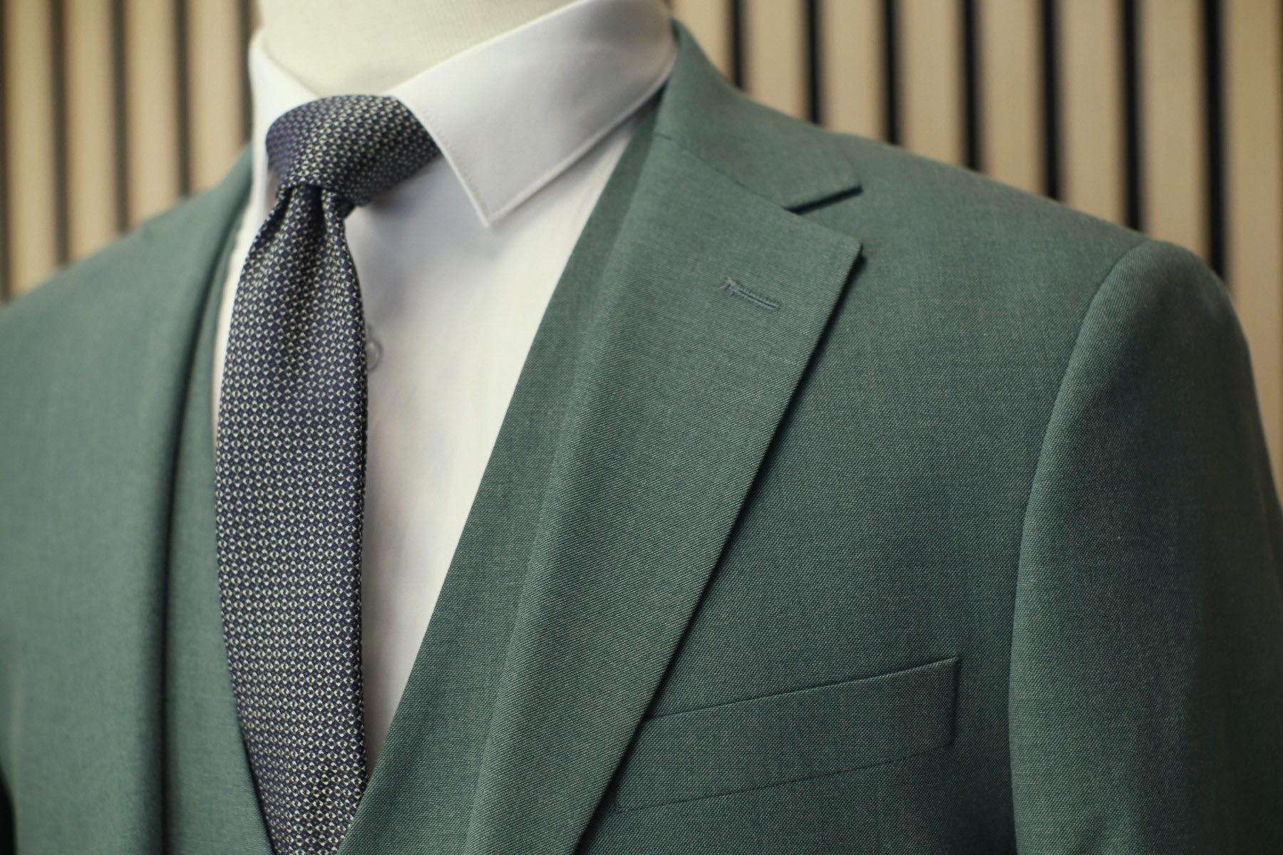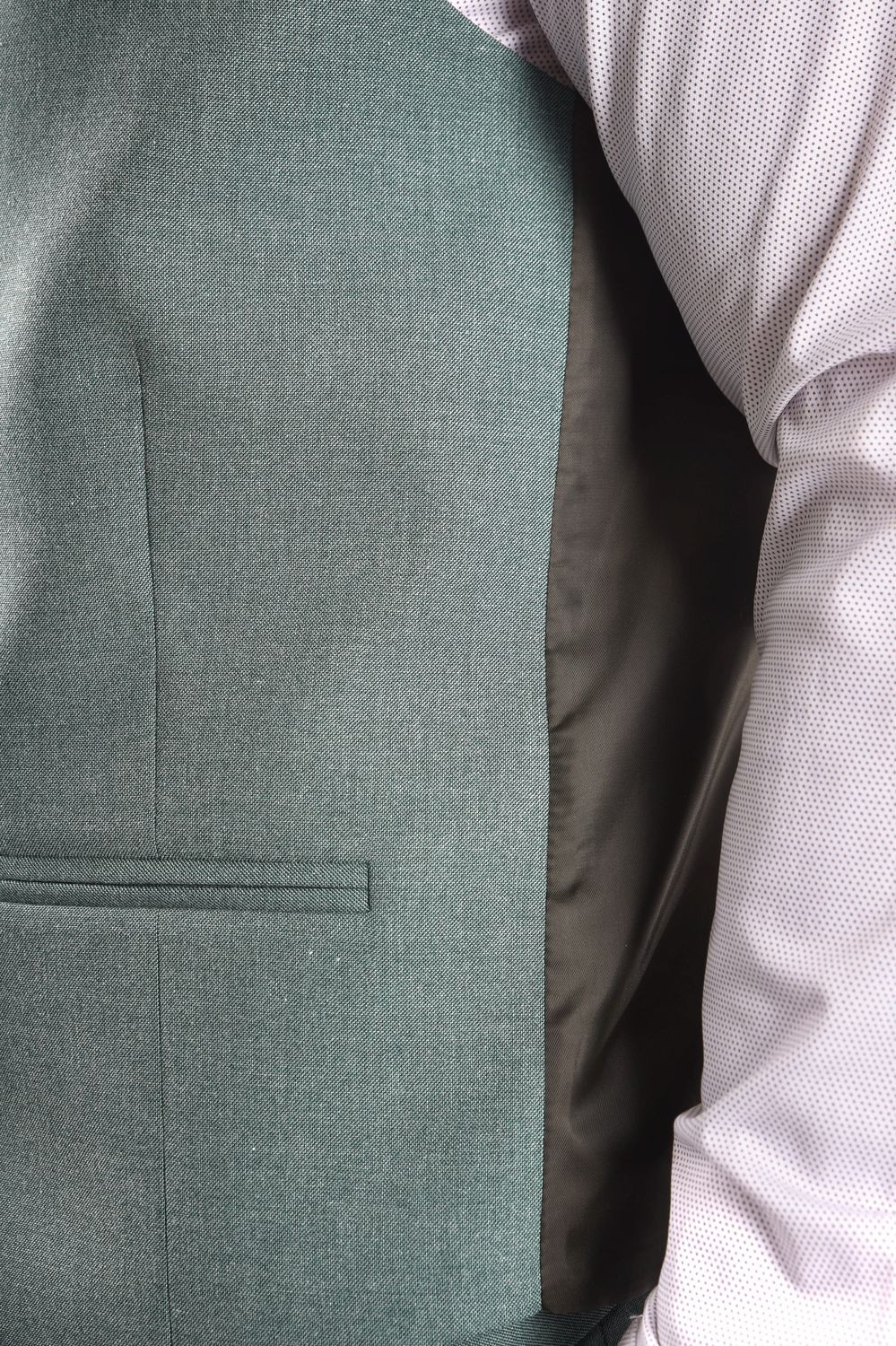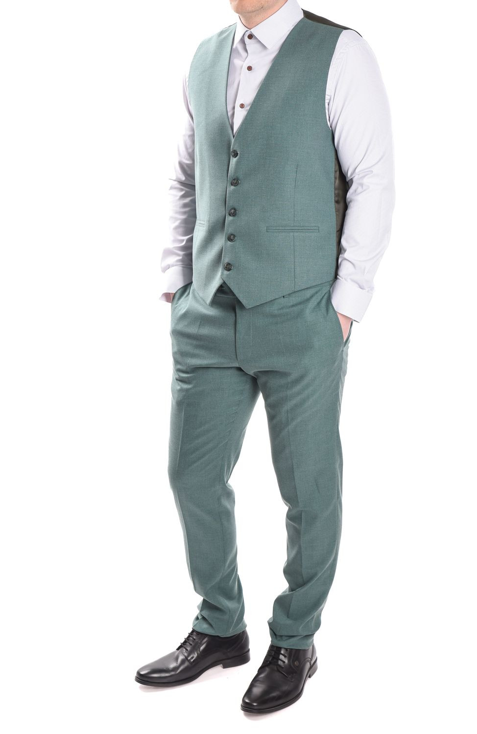 Balance férfi karcsúsított szabásvonalú három részes öltöny szett, zöld színben. Hátul dupla slicces zakó, kétgombos záródással. A zakó belsejében két zseb található. Igényes béléssel készült. A mellény egysoros gombolású, hátulján állítható. . Élére vasalt nadrágja övbújtatós, oldal és gombos farzsebes, derék része gombos és rejtett kapcsos záródású, slicc része cipzáras.