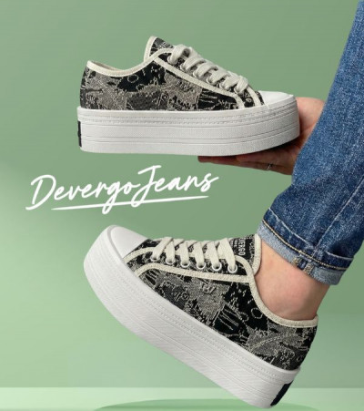Ez a platform sneaker figyelemfelkeltő fekete-fehér repedezett mintájával és tiszta fehér talpával igazi stílusnyilatkozat. A vagány utcai stílust és a kényelmet ötvözve tökéletes választás a mindennapokra, ha egy kis extra megjelenést szeretnél.