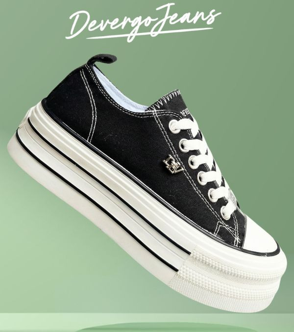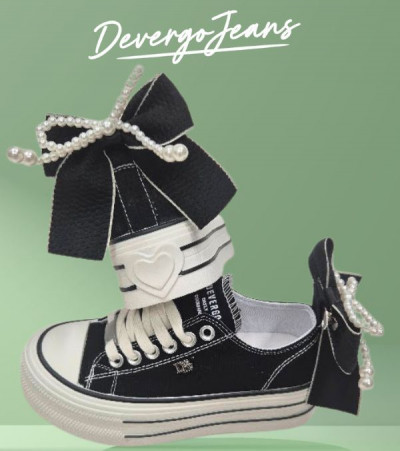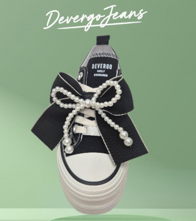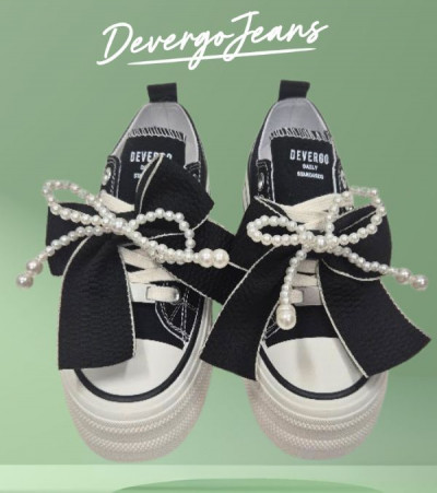 Tűnj ki a tömegből ezzel a karakteres, platformos vászon sneakerrel, amelyet különleges szalagos fűző és gyöngyös díszítés dob fel. A játékos részletek - mint logózott masni és a gyöngy - nőies eleganciát csempésznek bele a városi stílusba. Tökéletes választás azoknak, akik szeretik ötvözni a bájt és a vagányságot.