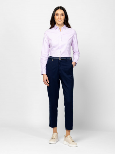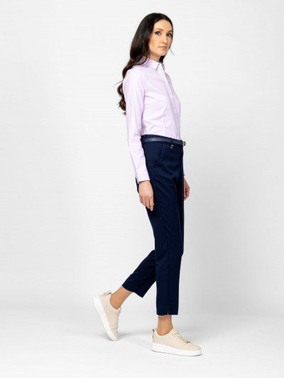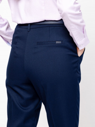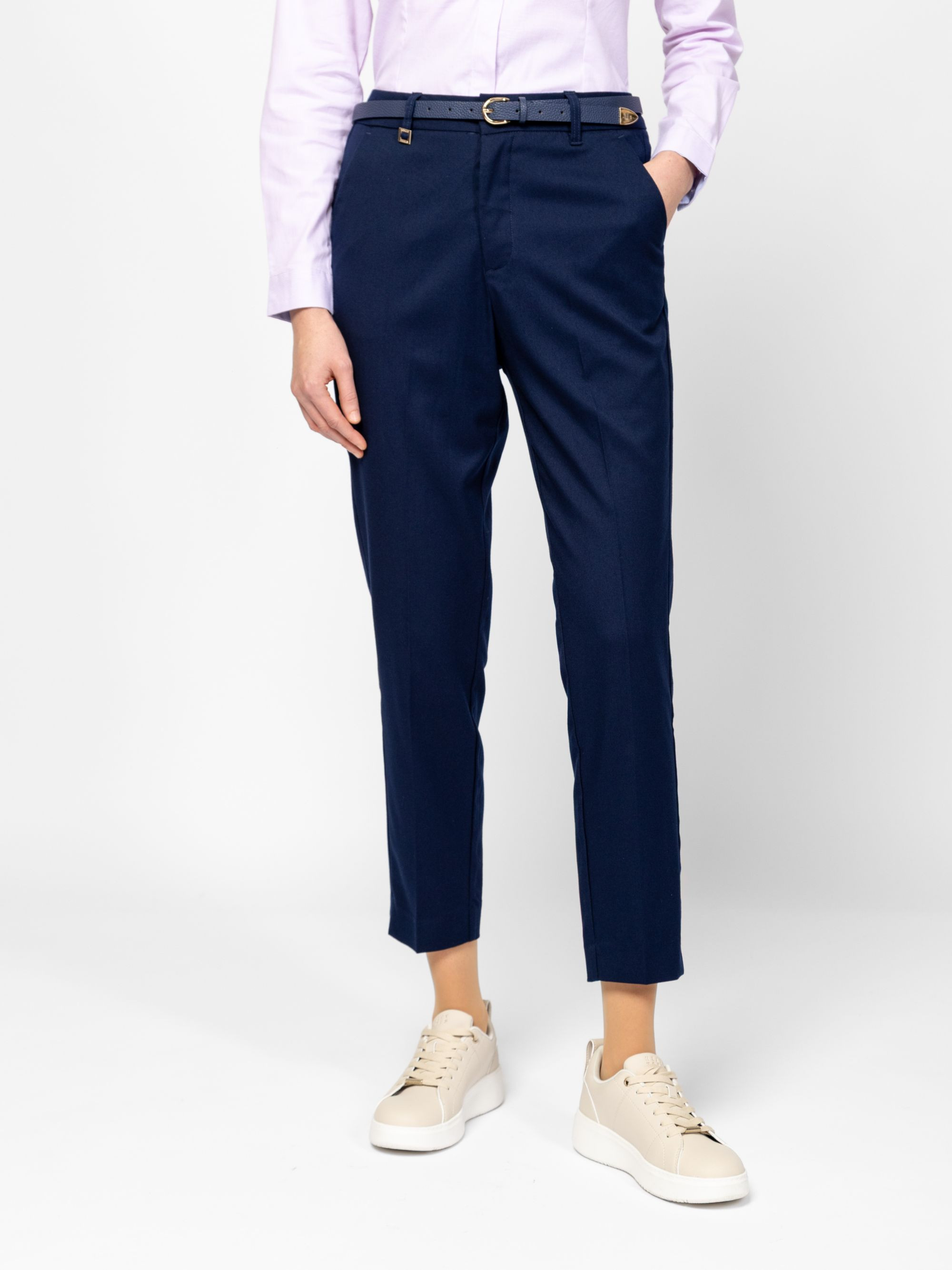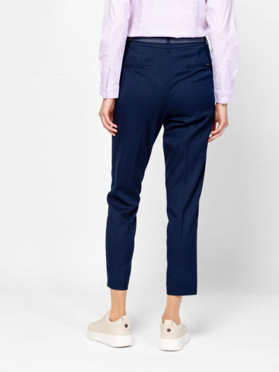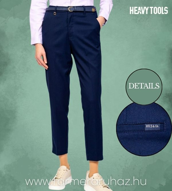 Heavy Tools női nadrág sötétkék színben; slim fit szabással, él vasalással, cipzáras slicc résszel és gombos derékkal. Svéd zsebes és dísz farzsebes, övbújtatóján fém, hátulján rávarrt márkajelzéssel.