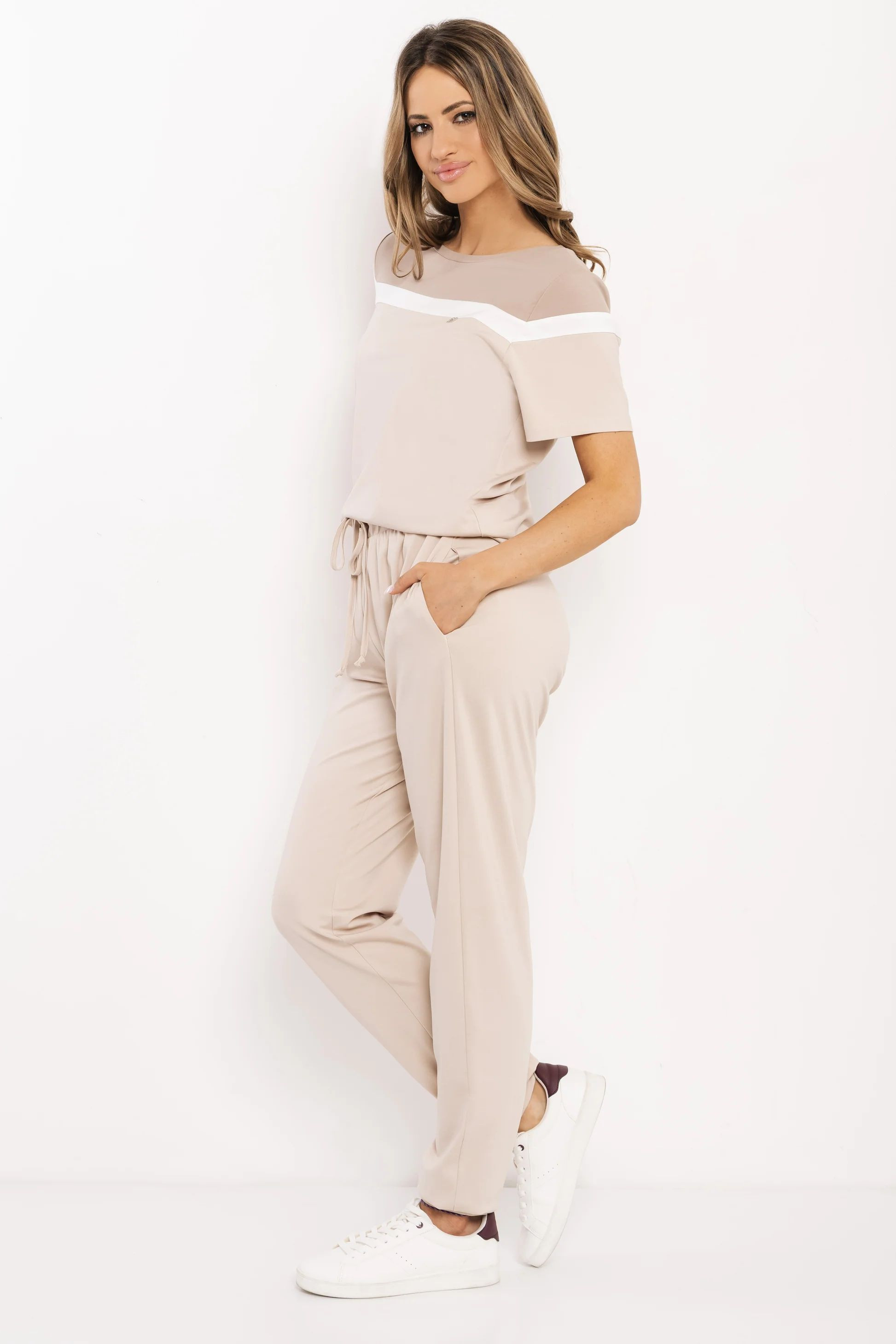 Amnesia egyenes szabású bővebb felső, bézs, fangó és fehér színben, elején mell részén fém márkajelzéssel.