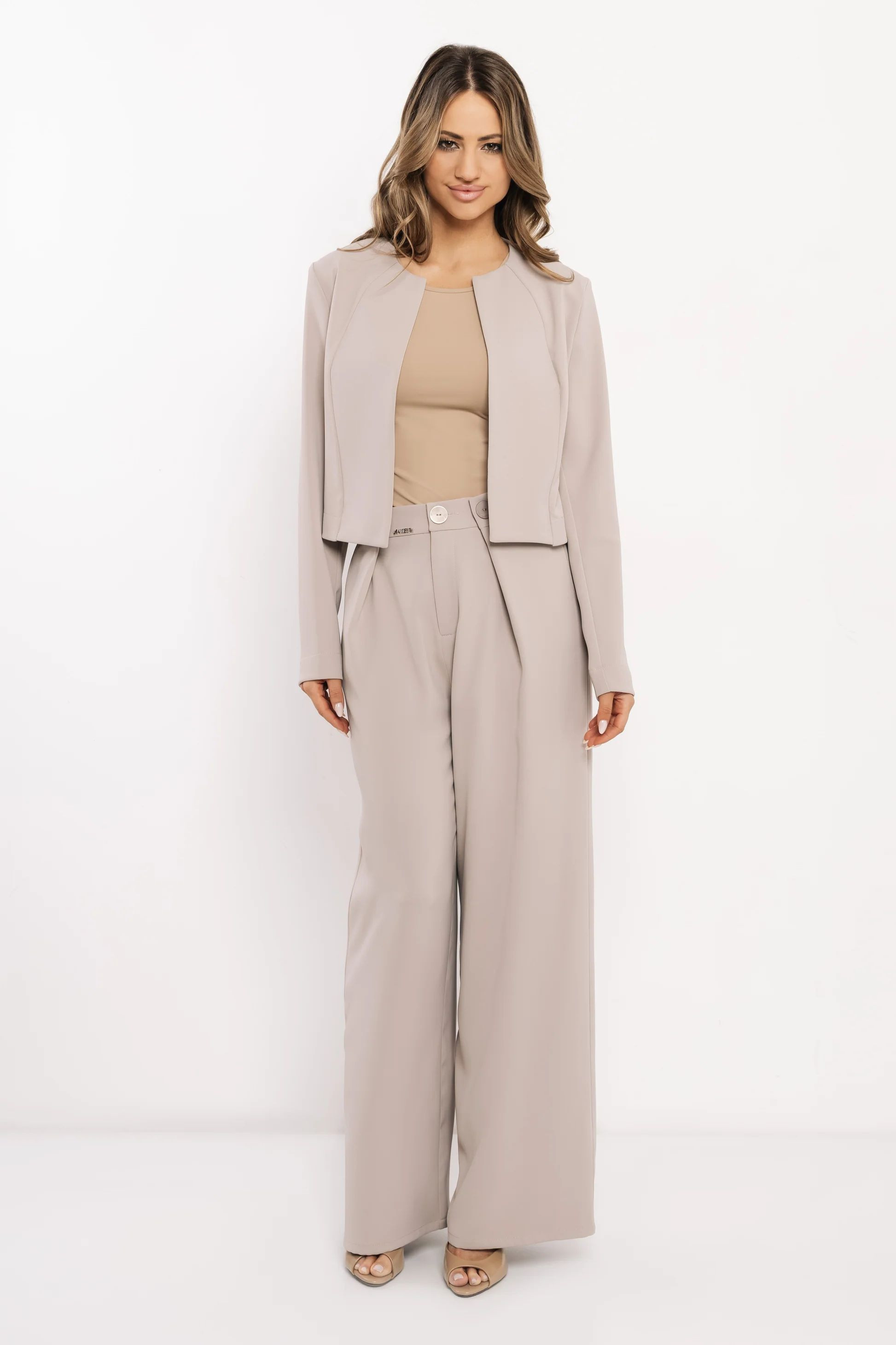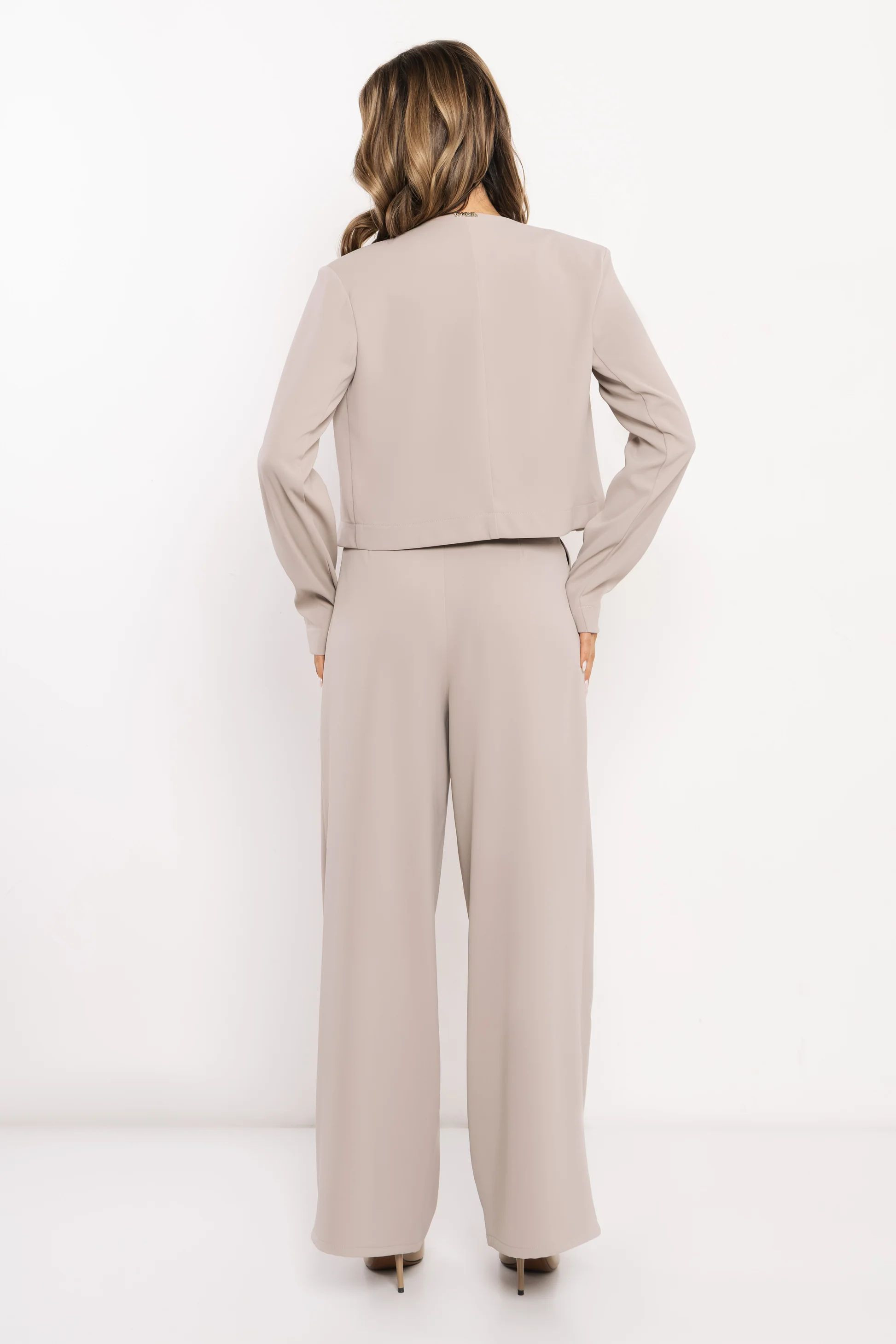 Amnesia fangó színű blézer, rövid fazonban,válltöméssel,hátán rávarrt fém márkajelzéssel.