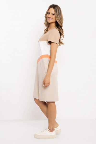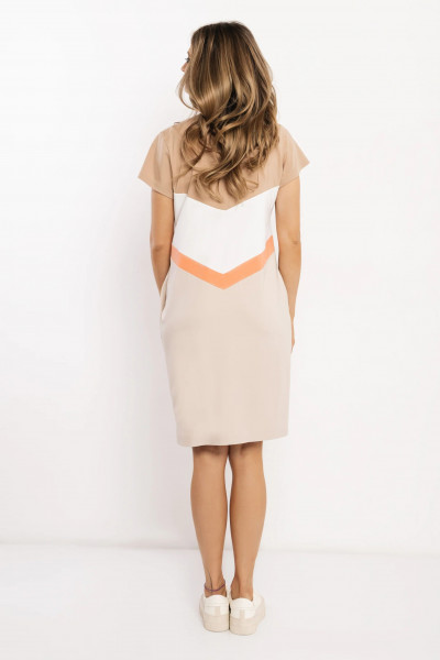 Amnesia ruha, bézs, ekrü, homok és narancs színben. Egyenes szabással, oldalzsebekkel, ujján fém márkajelzéssel.
