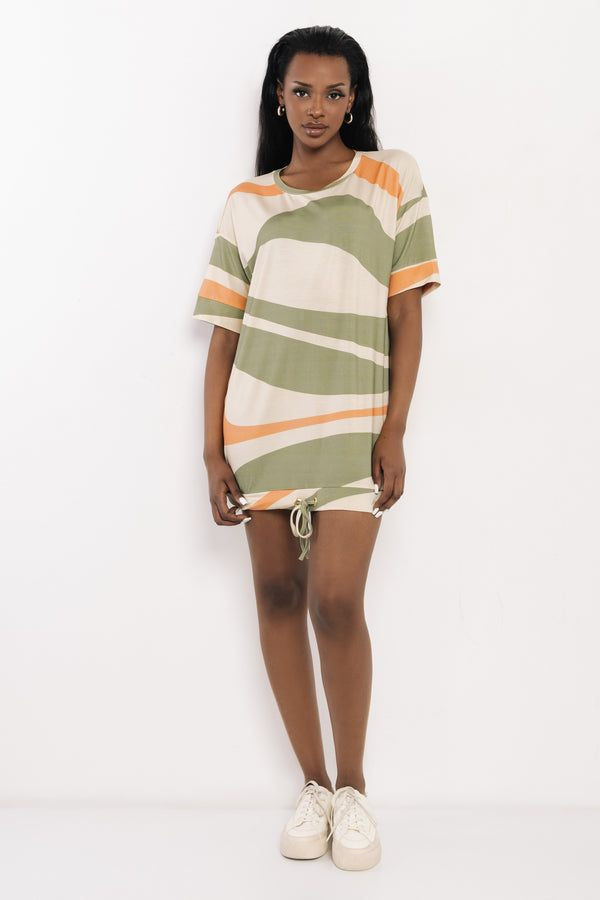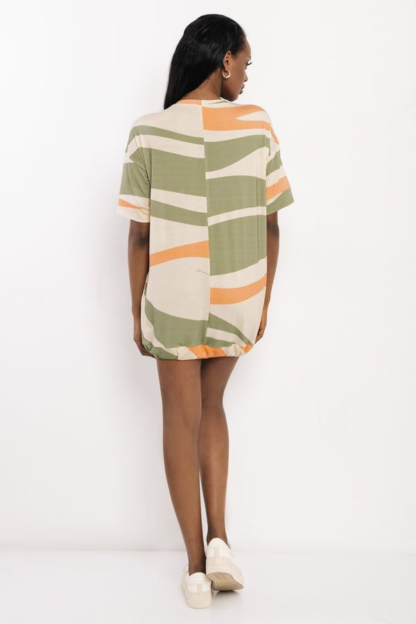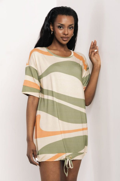 Amnesia laza, bő szabású tunika, bézs, khaky és tégla színben. Alul összehúzható és megkötős, ejtett vállakkal, anyagában márkajelzéssel.