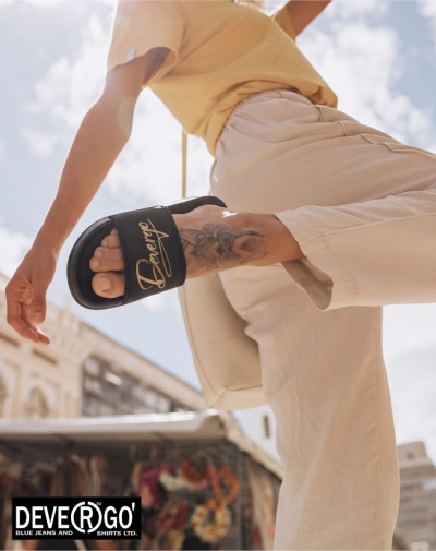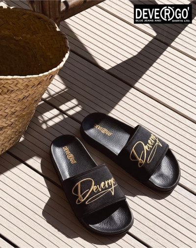 Ez a női papucs ötvözi a kényelmet és a dizájnt. A puha lycra felsőrész kellemesen illeszkedik a lábhoz, míg a könnyű EVA talp egész napos kényelmet biztosít. Az arany színű, csillámos DEVERGO aláírás a pánton stílusos megjelenést nyújt, akár a városban, akár a parton viseled.
