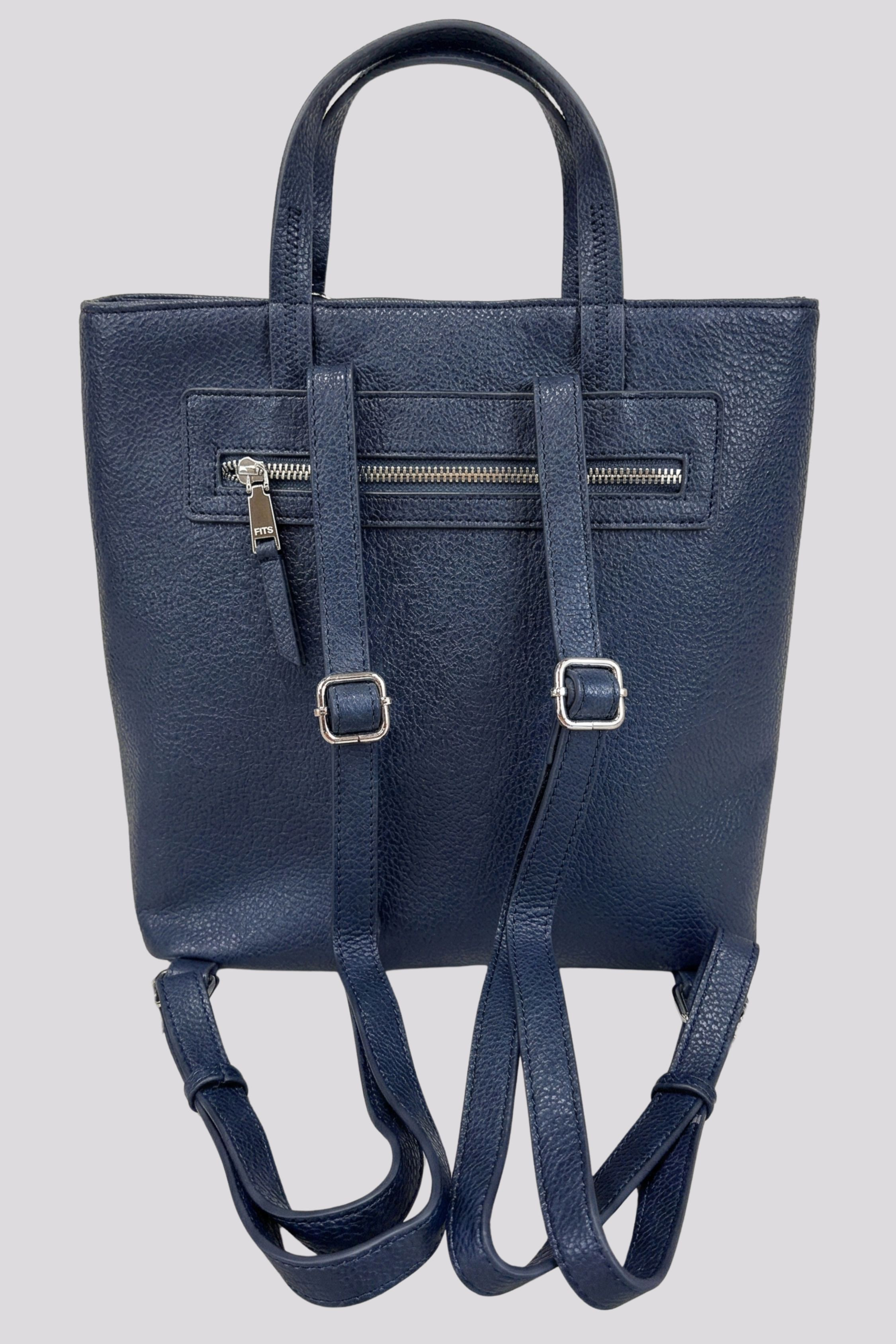Heavy Tools női háti táska, sötét kék színben, cipzáras záródással, belső zsebekkel, elején fém márkajelzéssel.