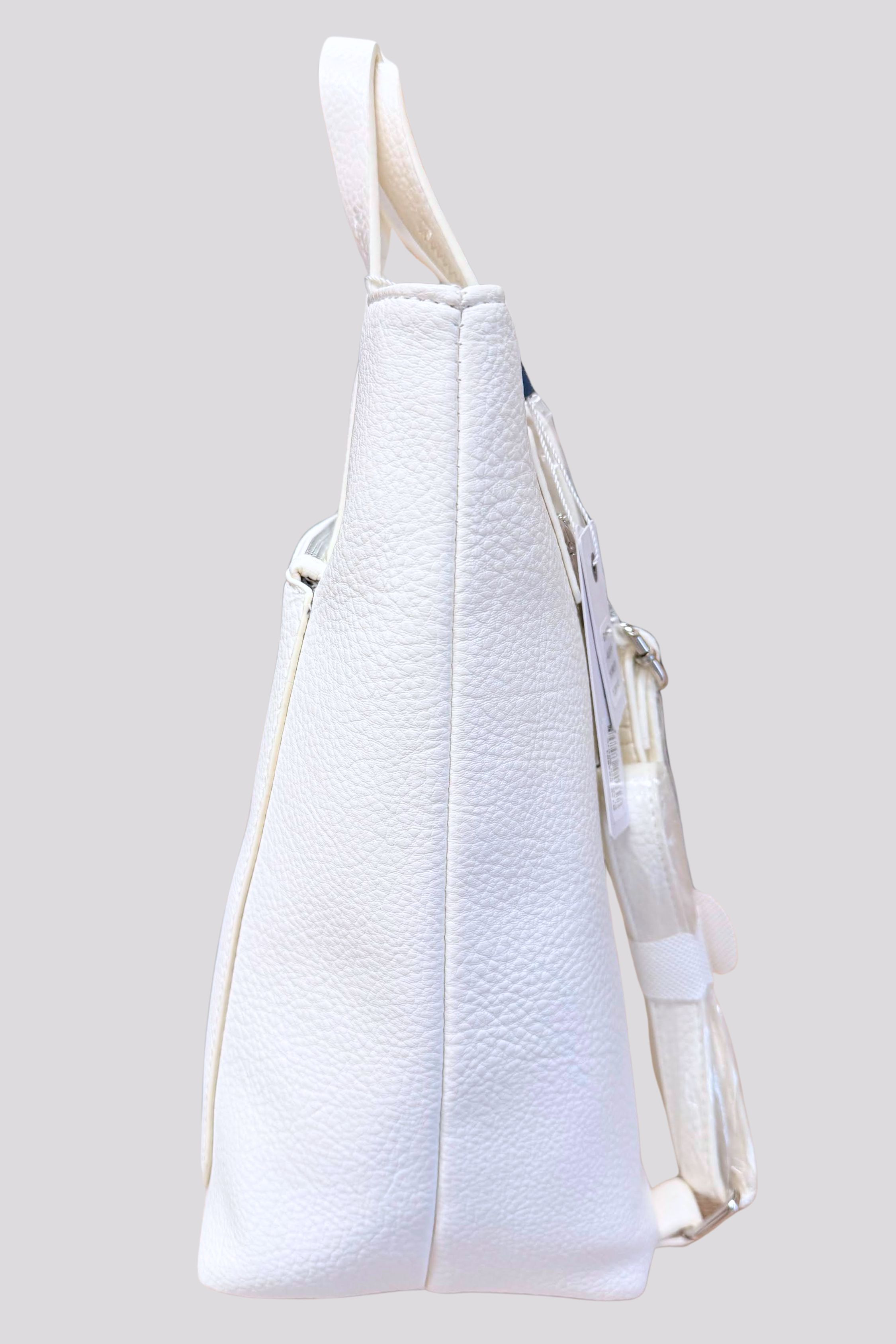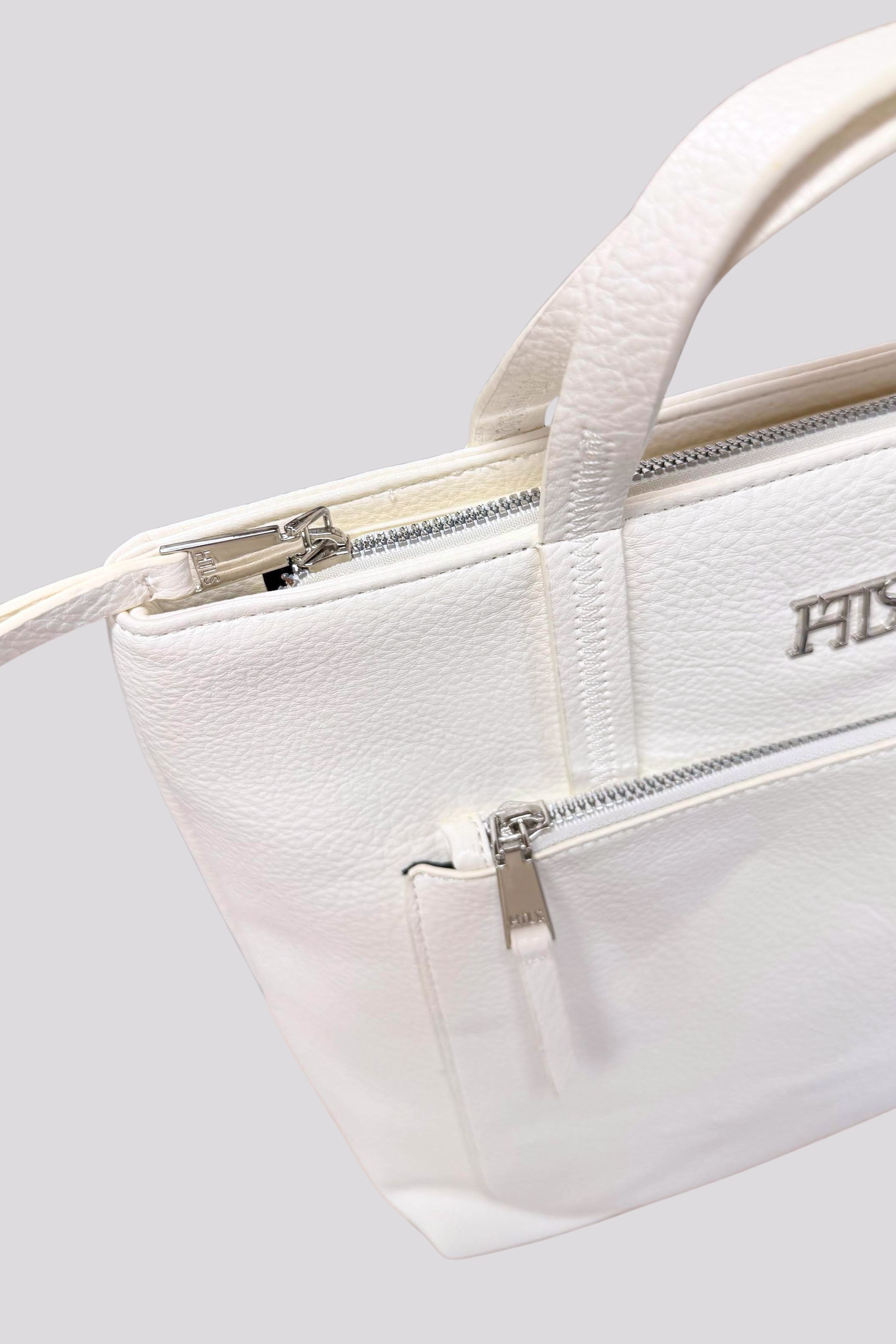 Heavy Tools női háti táska, fehér színben, cipzáras záródással, belső zsebekkel, elején fém márkajelzéssel.