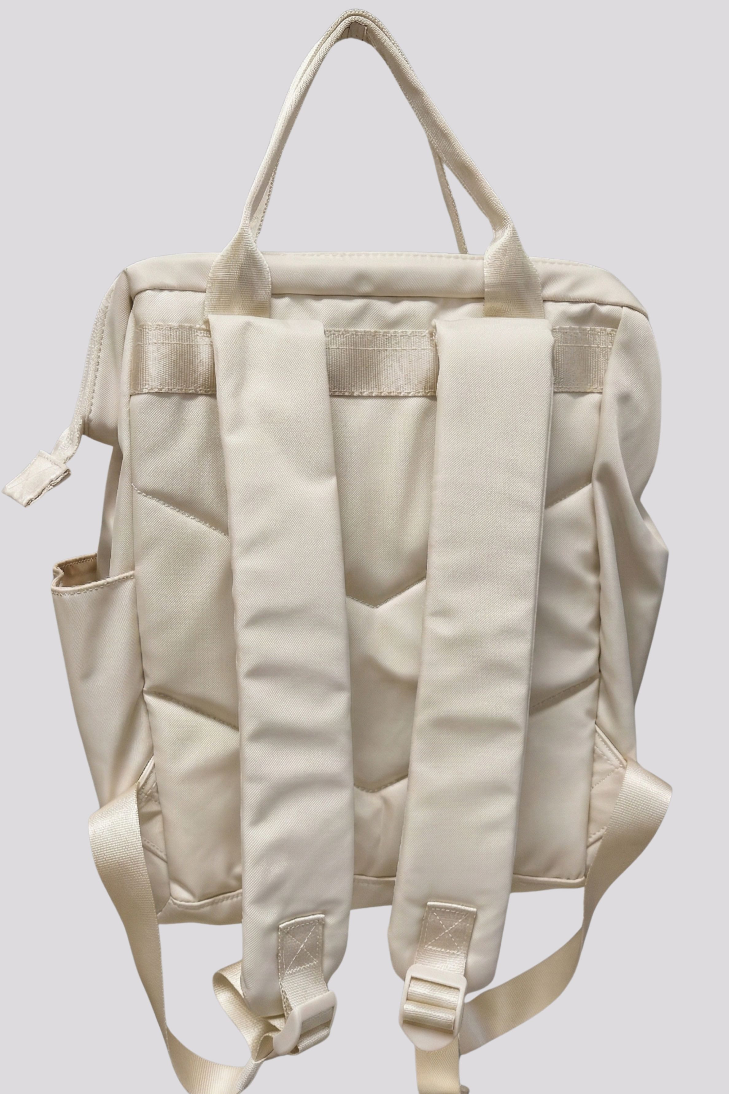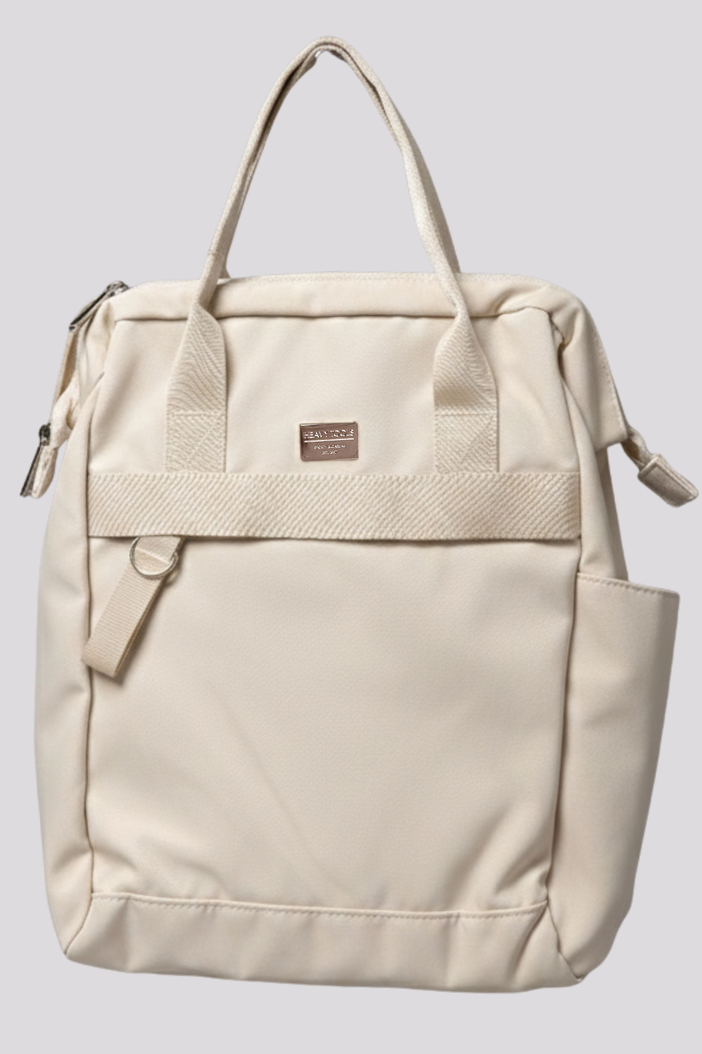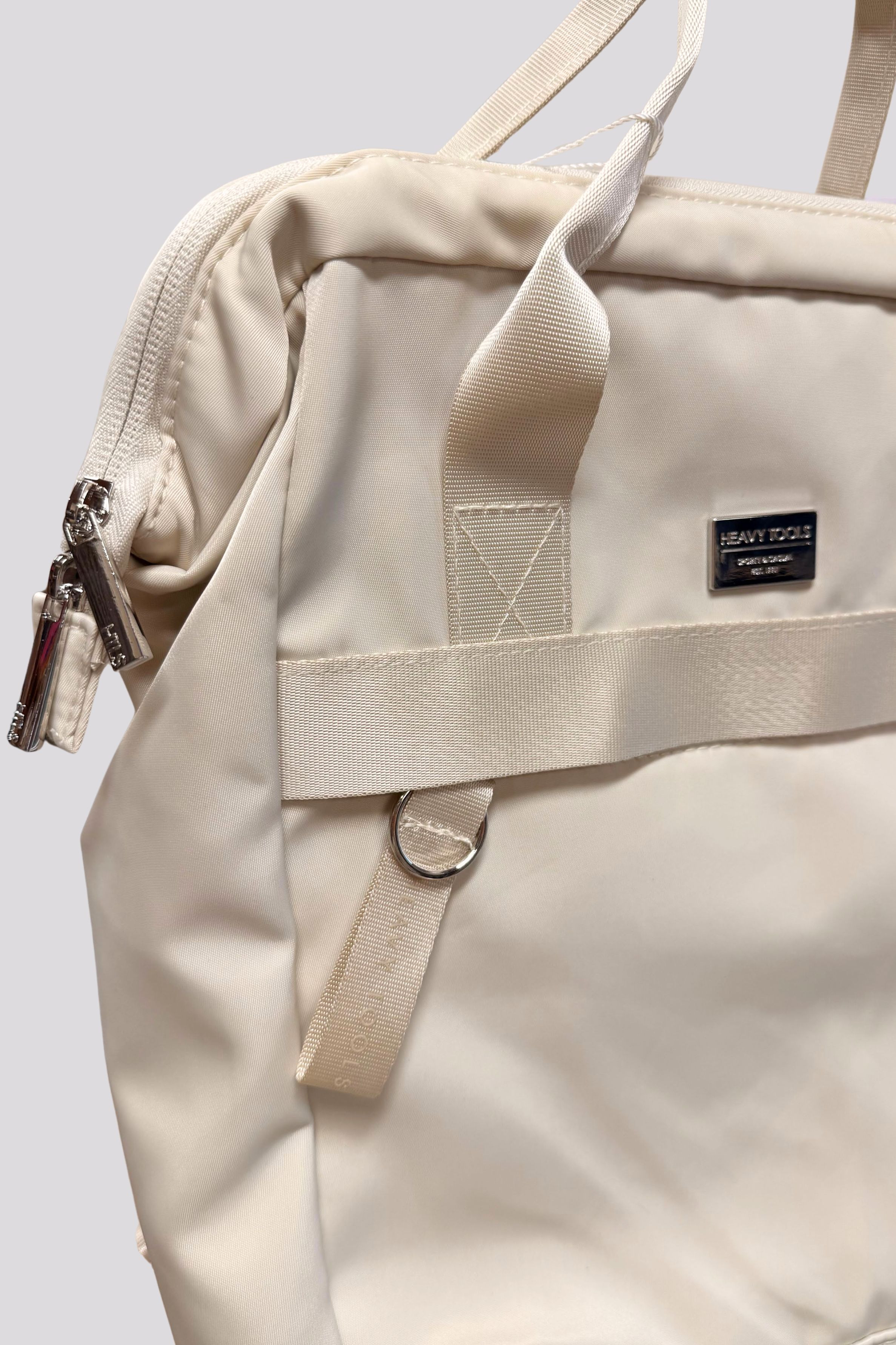 Heavy Tools női háti táska, csont színben, cipzáras záródással, belső zsebekkel, elején fém márkajelzéssel.
