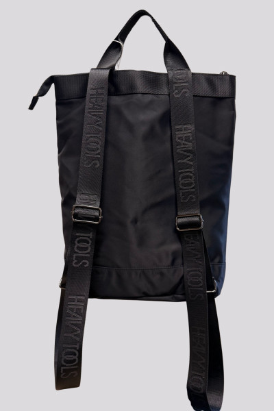 Heavy Tools női háti táska, fekete színben, cipzáras záródással, belső zsebekkel, elején gumi márkajelzéssel.