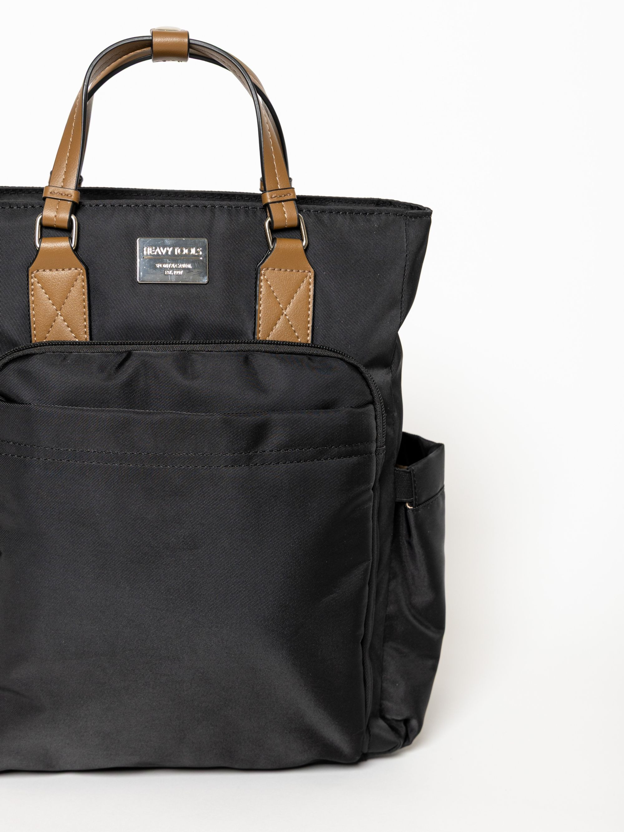 Heavy Tools női strapabíró vászon hátizsák fekete színben; zipzáros záródással; egyterű belsőrésszel; belsejében egy zipzáros zsebbel és egy kisméretű rekesszel; műbőr foggantyúval; állítható vállpánttal; elején egy zipzáros zsebbel és egy rekesszel; két oldalán rekesszel; elején fém márkajelzéssel.
