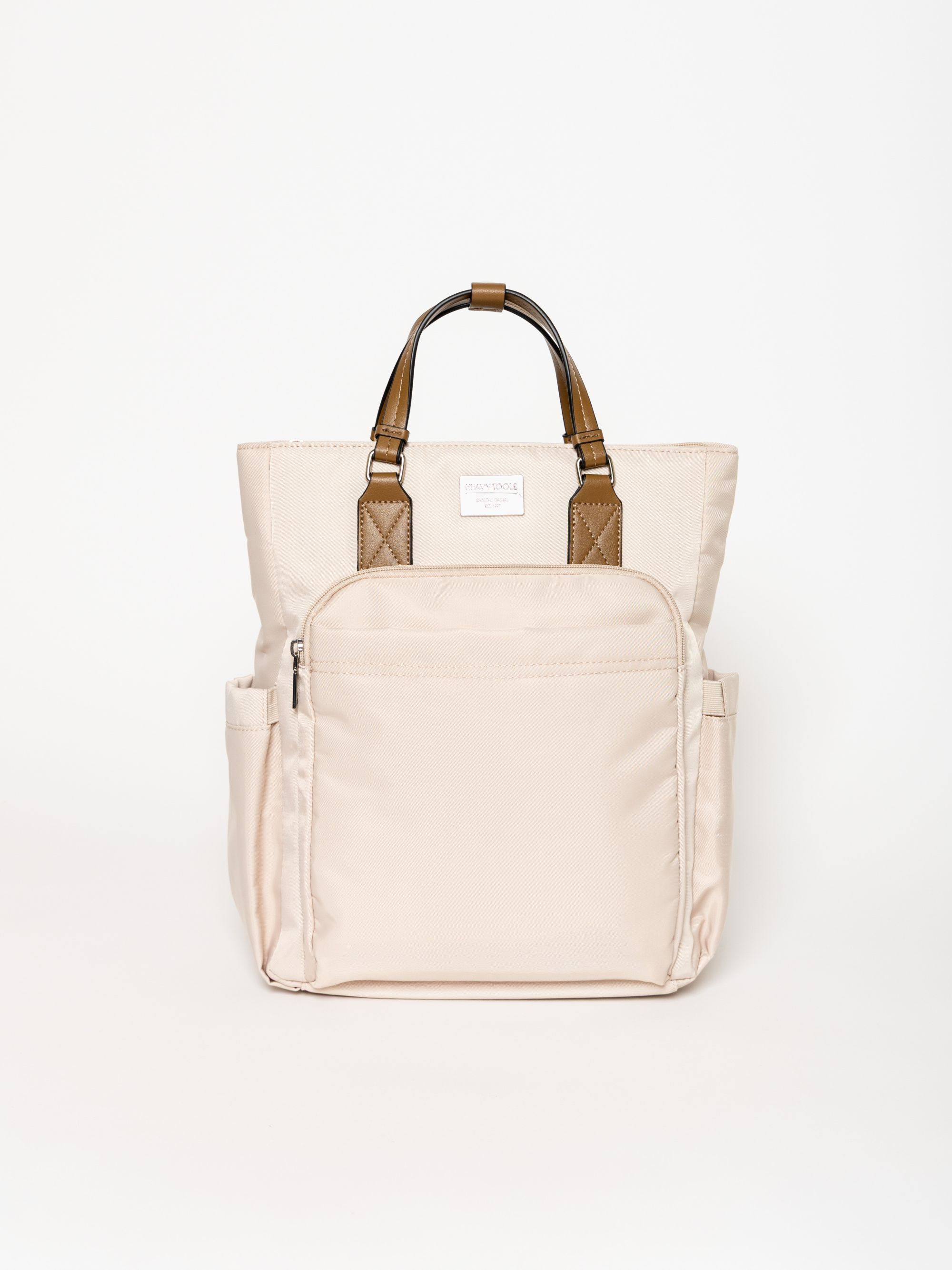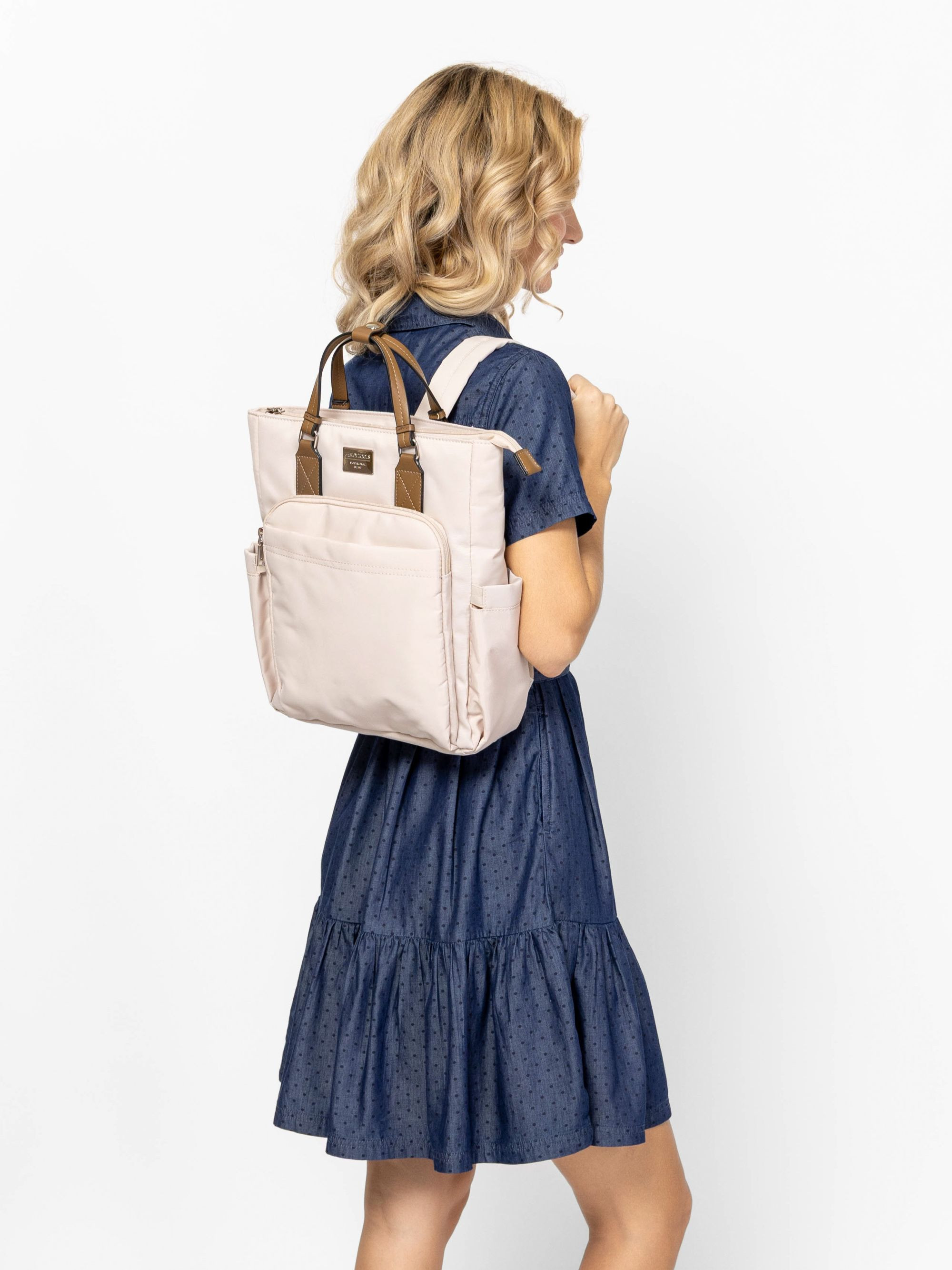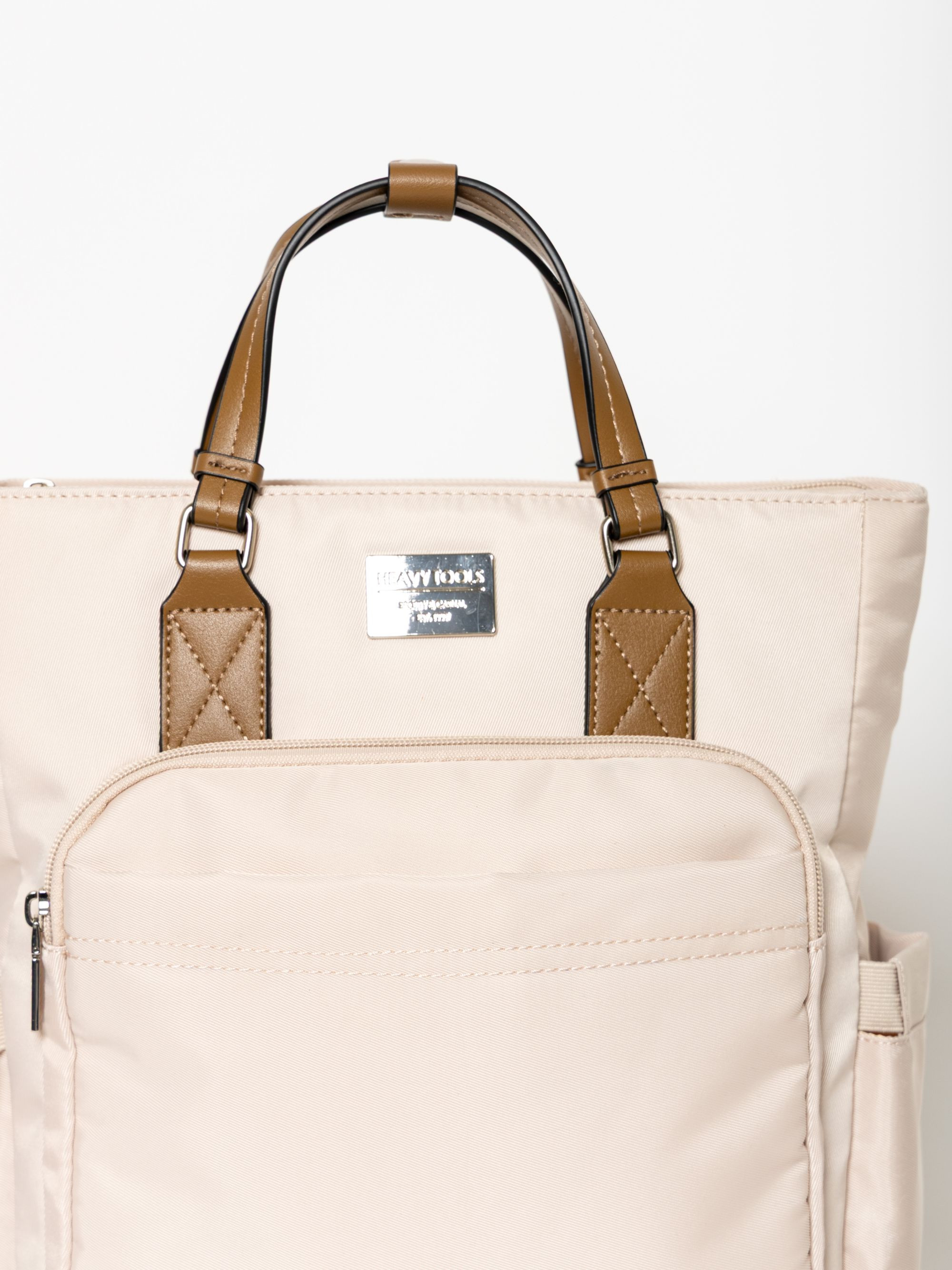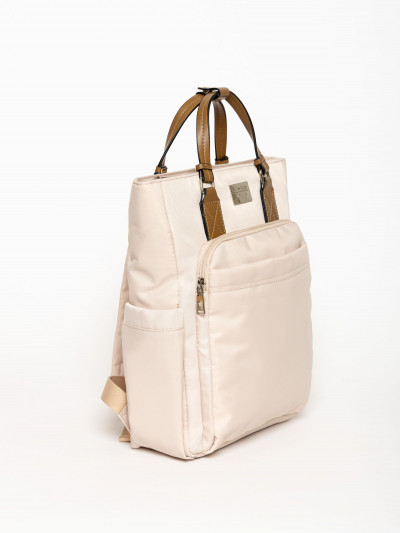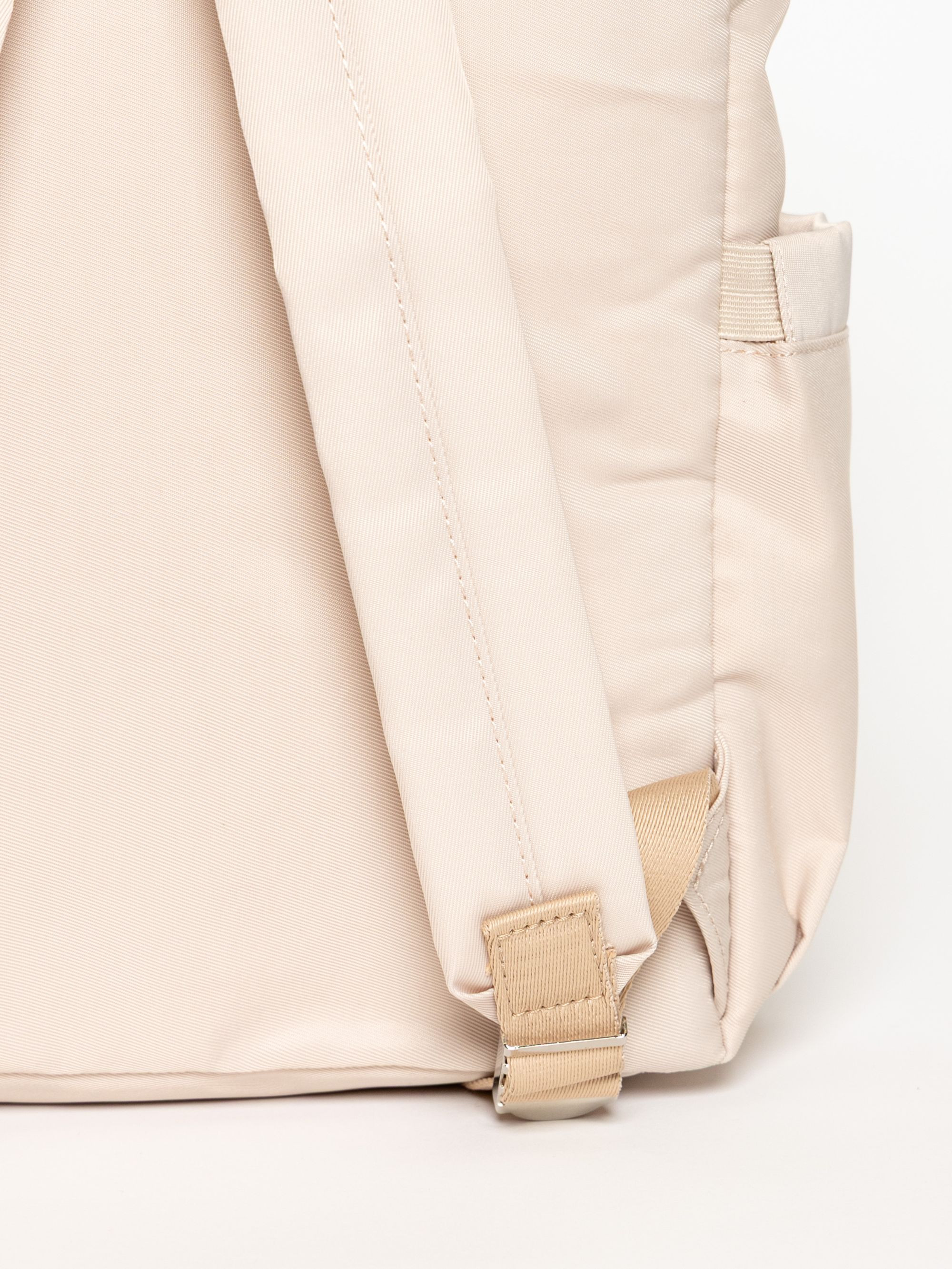 Heavy Tools női strapabíró vászon hátizsák nude színben; zipzáros záródással; egyterű belsőrésszel; belsejében egy zipzáros zsebbel és egy kisméretű rekesszel; műbőr foggantyúval; állítható vállpánttal; elején egy zipzáros zsebbel és egy rekesszel; két oldalán rekesszel; elején fém márkajelzéssel.