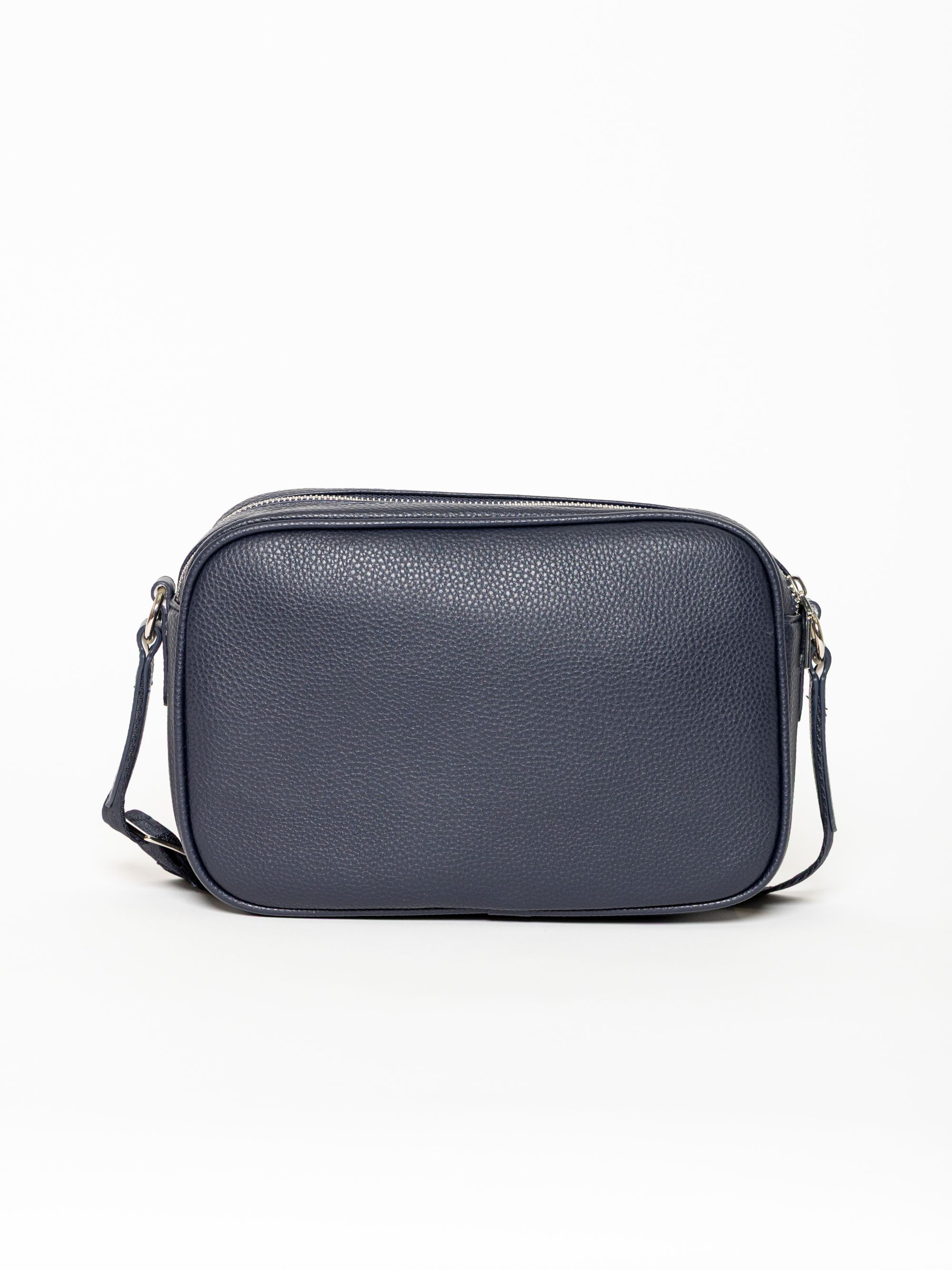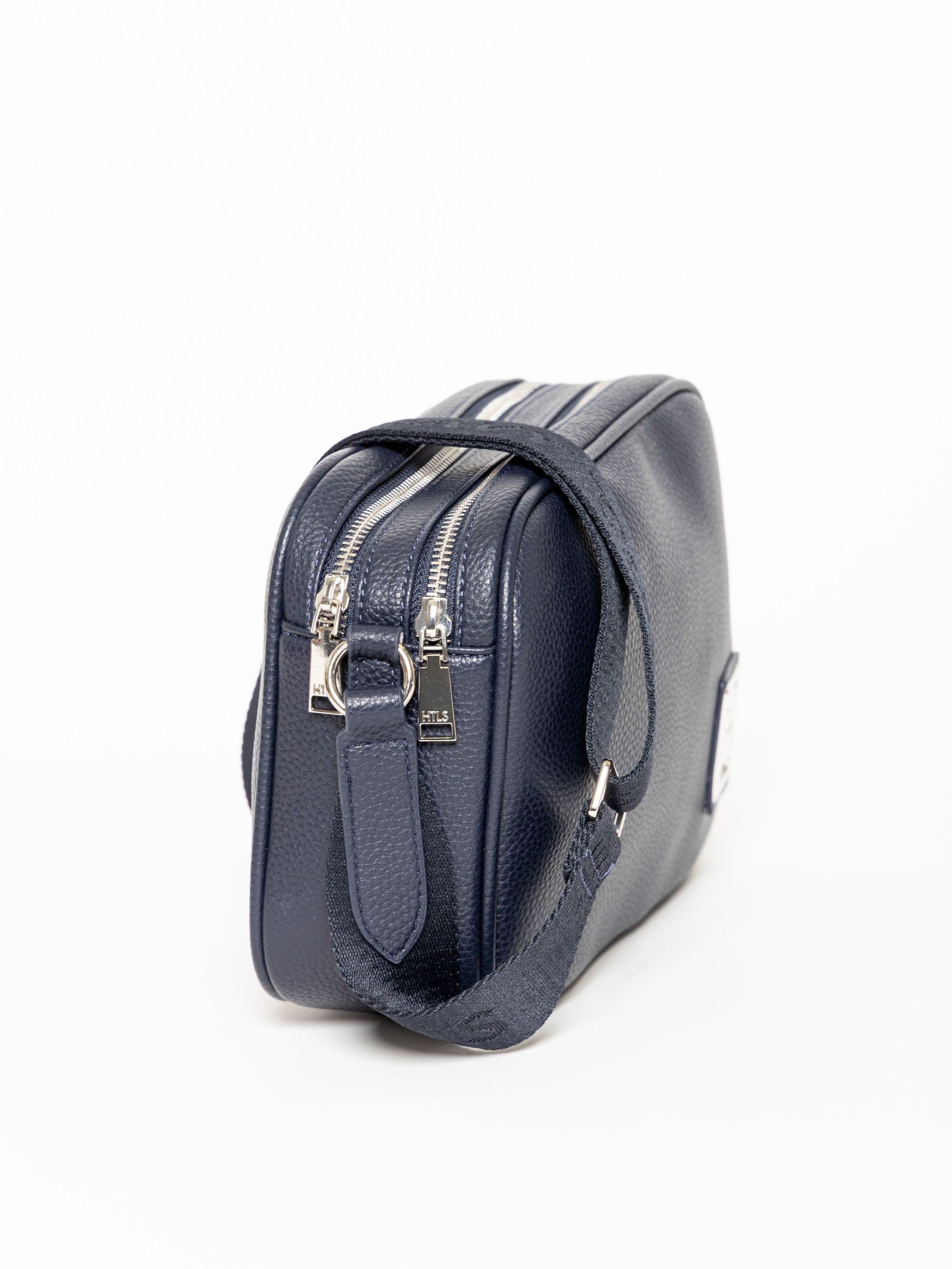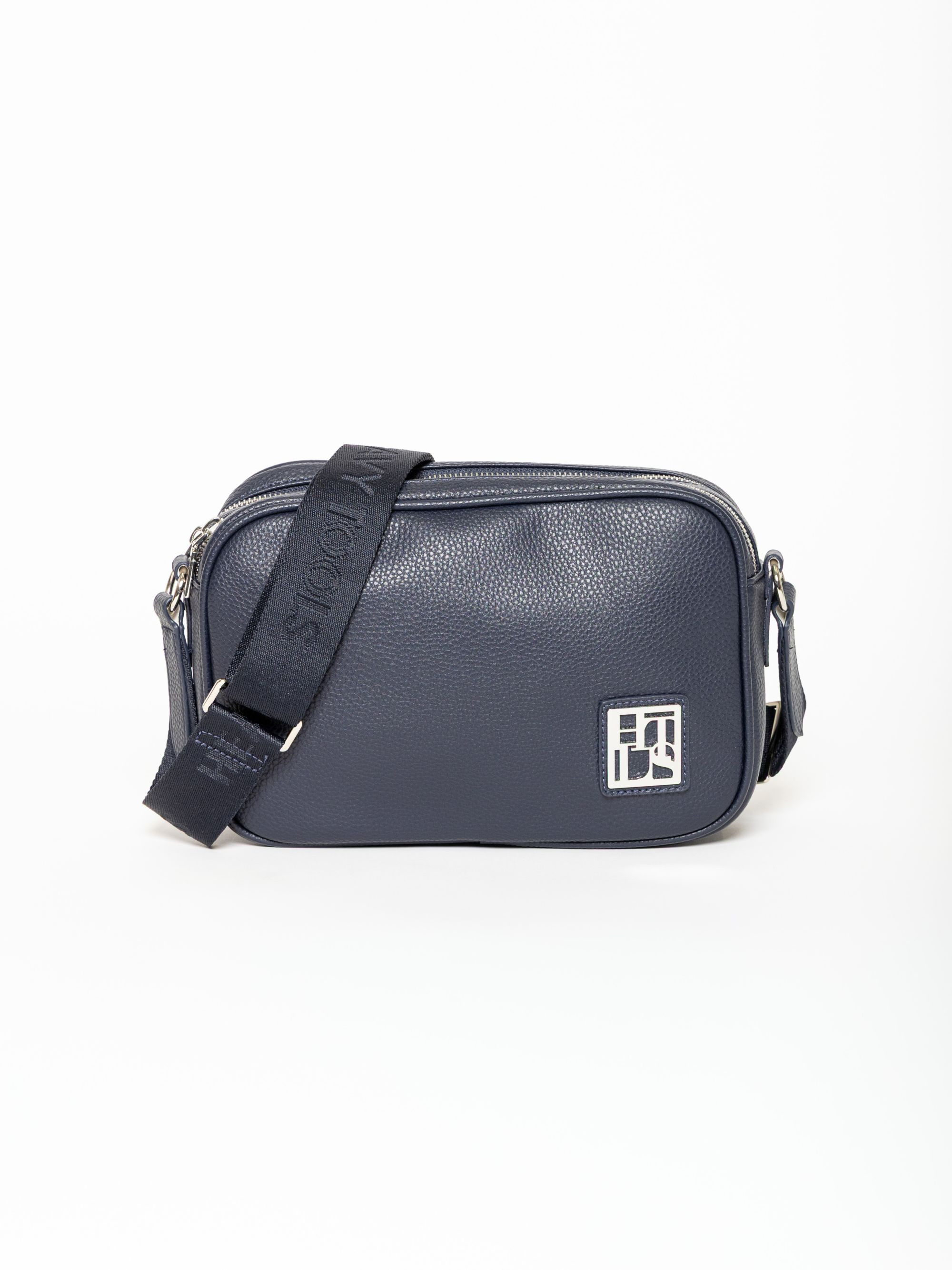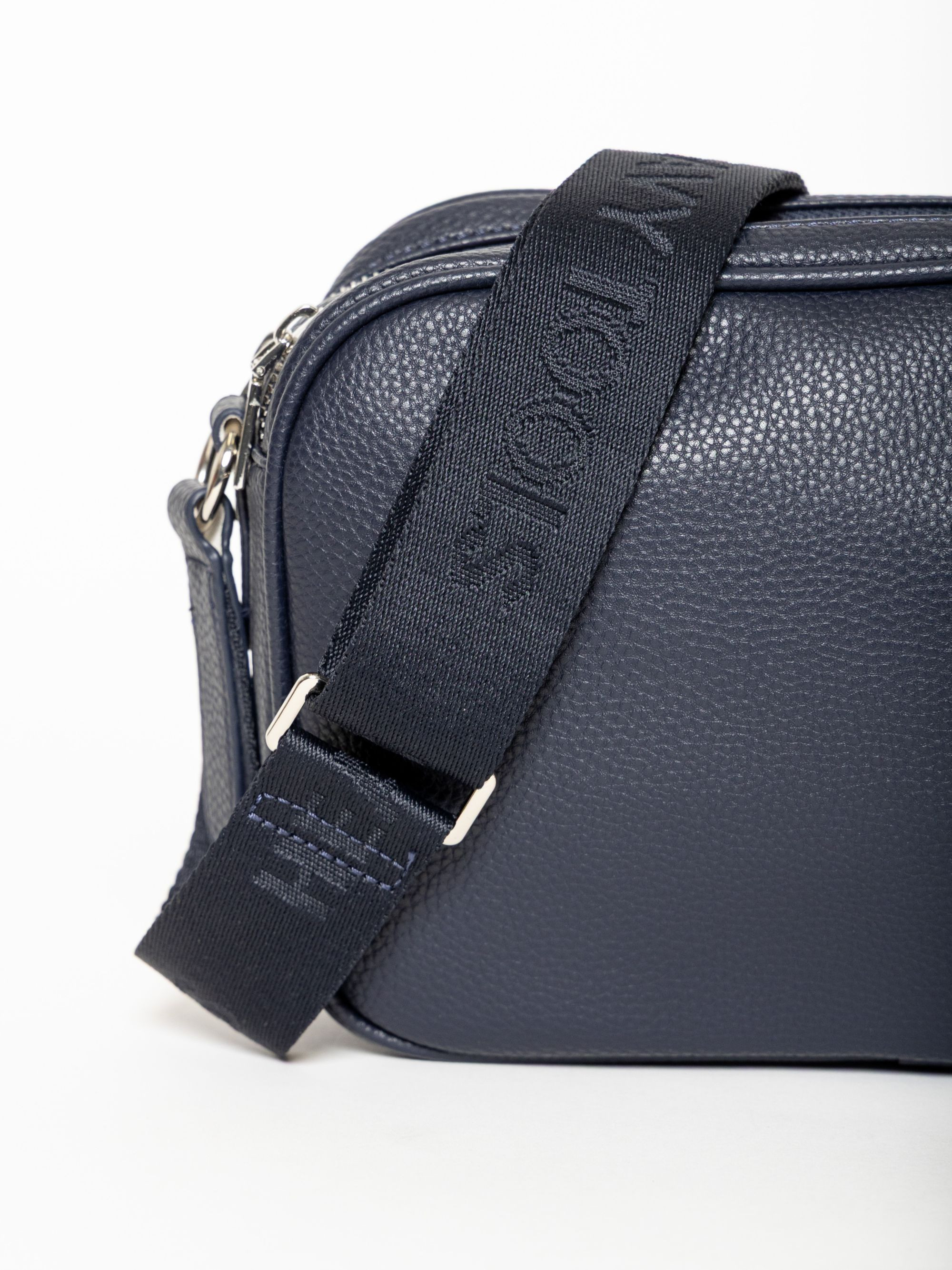 Heavy Tools női válltáska, sötétkék színben, két rekesszel, dekoratív belső és külső kidolgozással, belső zsebekkel, logózott, állítható vállpánttal, kis márkajelzéssel az elején.