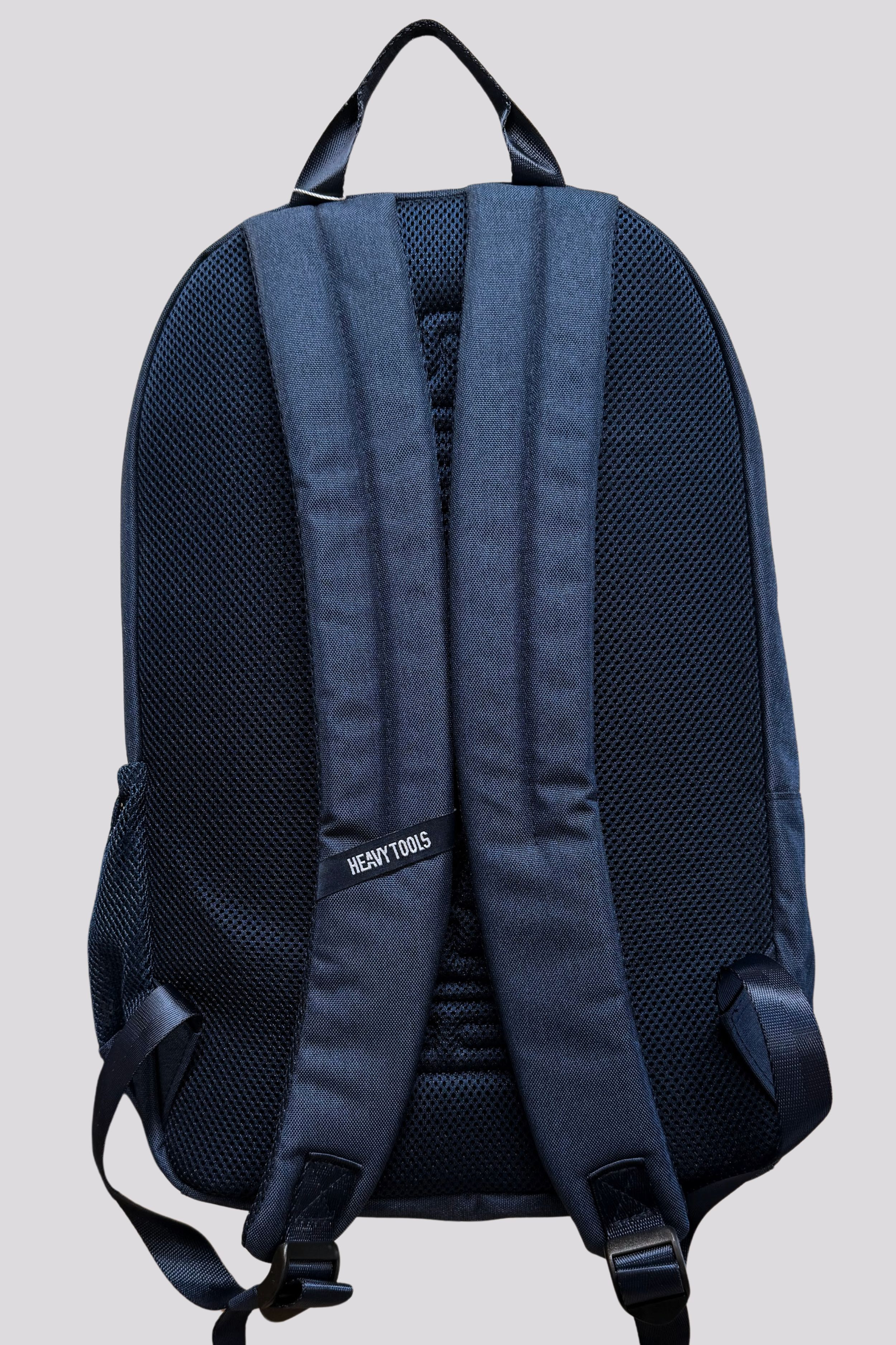 Heavy Tools unisex hátitáska sötét kék színben; egy belső rekesszel, laptop tartóval (15.6"), cipzáras záródással, elején cipzáras zsebbel. Háta párnázott, oldalán palacktartóval, vállpántjai állíthatók és párnázottak, elején szilikon márkajelzéssel.