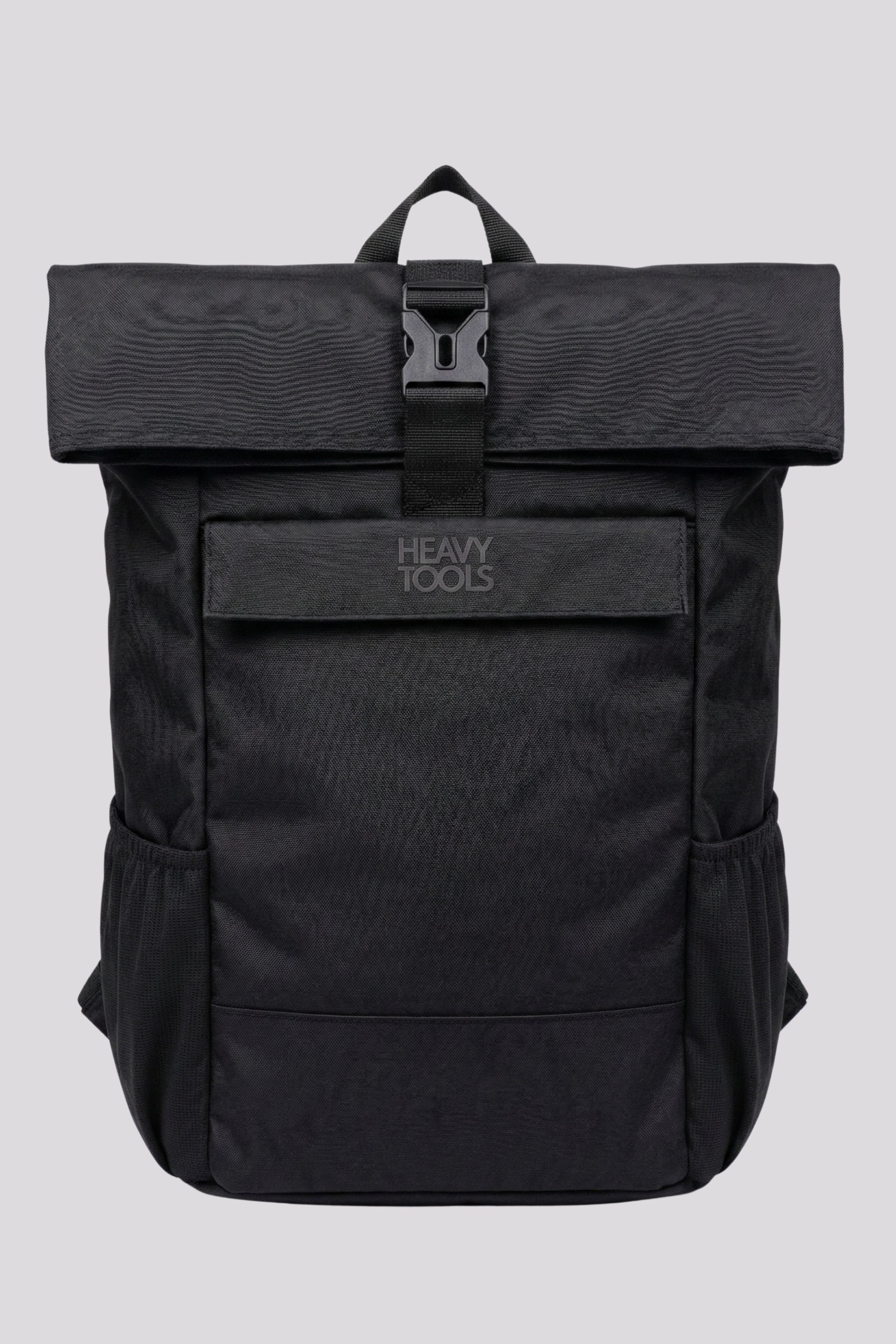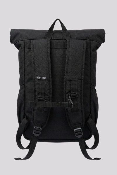 Heavy Tools unisex hátitáska fekete színben; egy belső rekesszel, laptop tartóval (15.6"), cipzáras záródással, elején cipzáras zsebbel. Oldalán palacktartóval, vállpántjai állíthatók és párnázottak, elején filmnyomott márkajelzéssel.