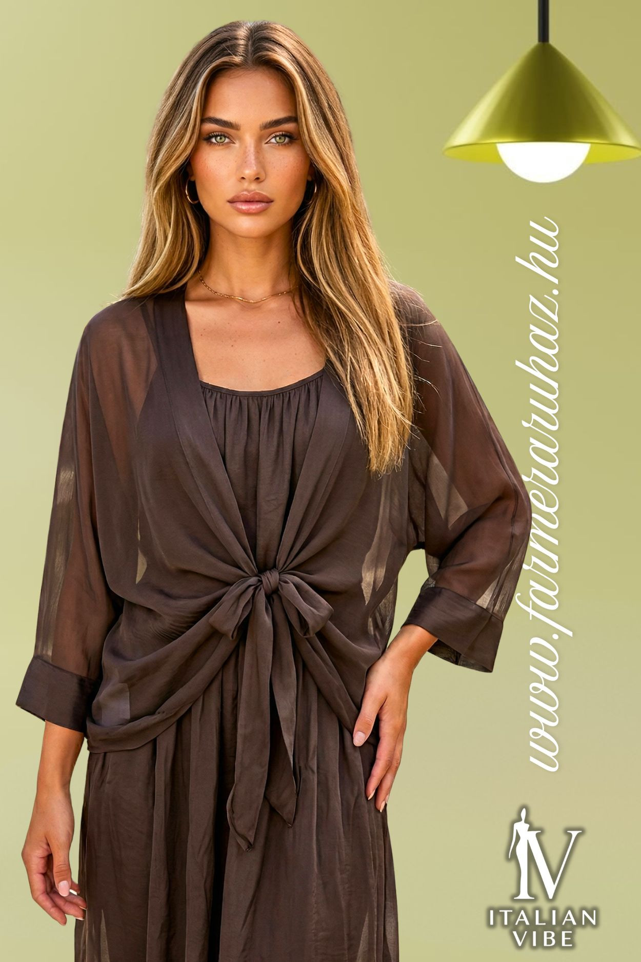 Italian Vibe női kardigán, csokoládé barna színben. lenge fazonban, vékony áttetsző anyaggal, elején lazán megköthető.