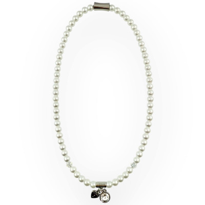 Cango&Rinaldi egysoros gyöngy nyaklánc, fehér (white) színű gyöngy és fehér színű kristály kombinációjából, charm díszítéssel melyben egy különleges csiszolású, fehér színű kristály található, a nyaklánc nikkel színű fémkellékkel készült. A fémkellékekbe gravírozott Cango&Rinaldi, Cango&R, és C&R feliratok jelölik a brand eredetiségét és minőségét!